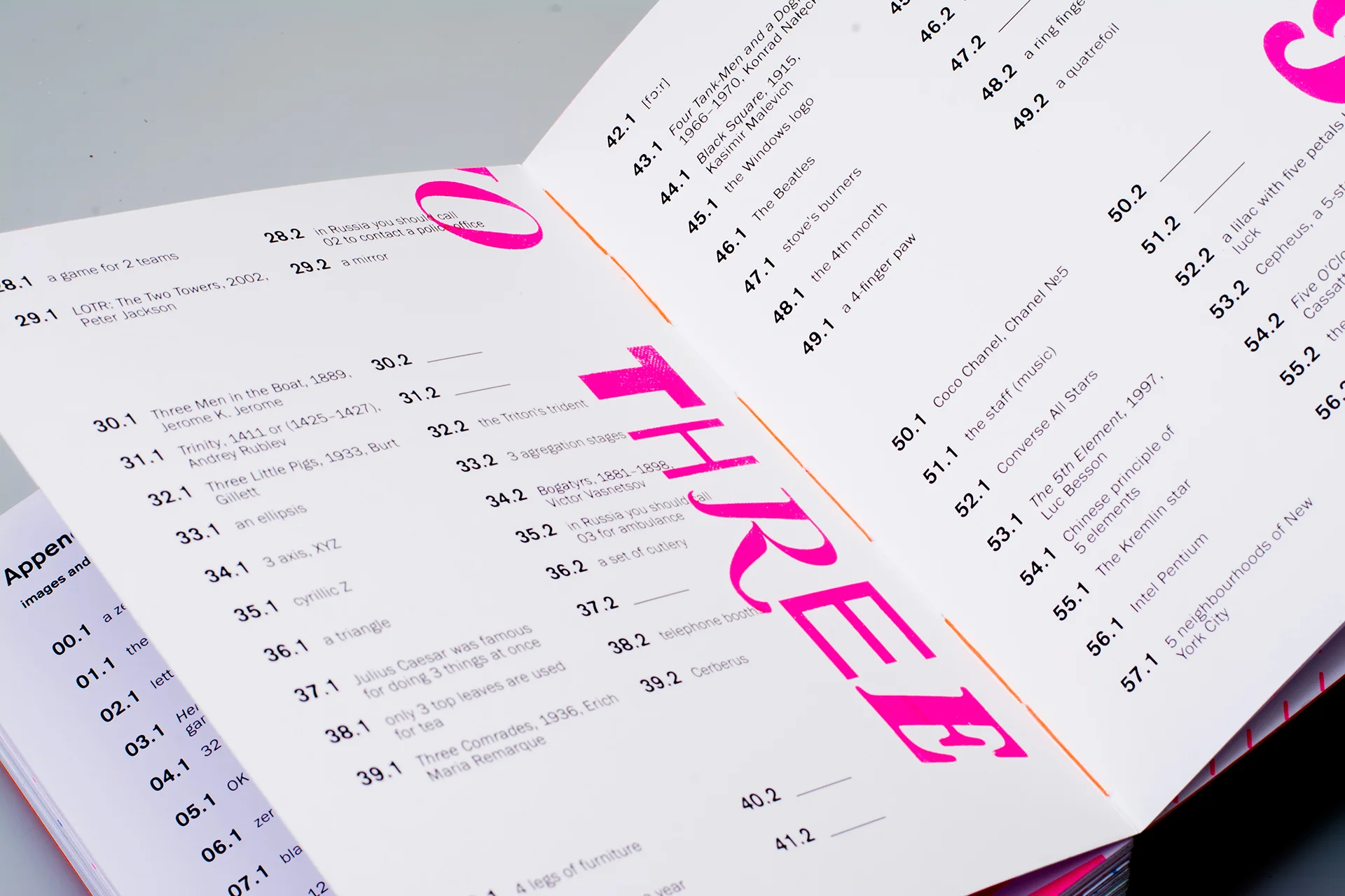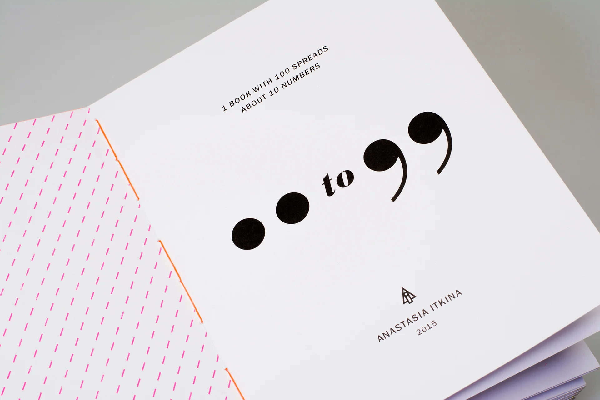 00–99 is a 100-spread book dedicated to ten simple digits from 0 to 9. Each digit is presented in different images none of which shows the actual symbol.