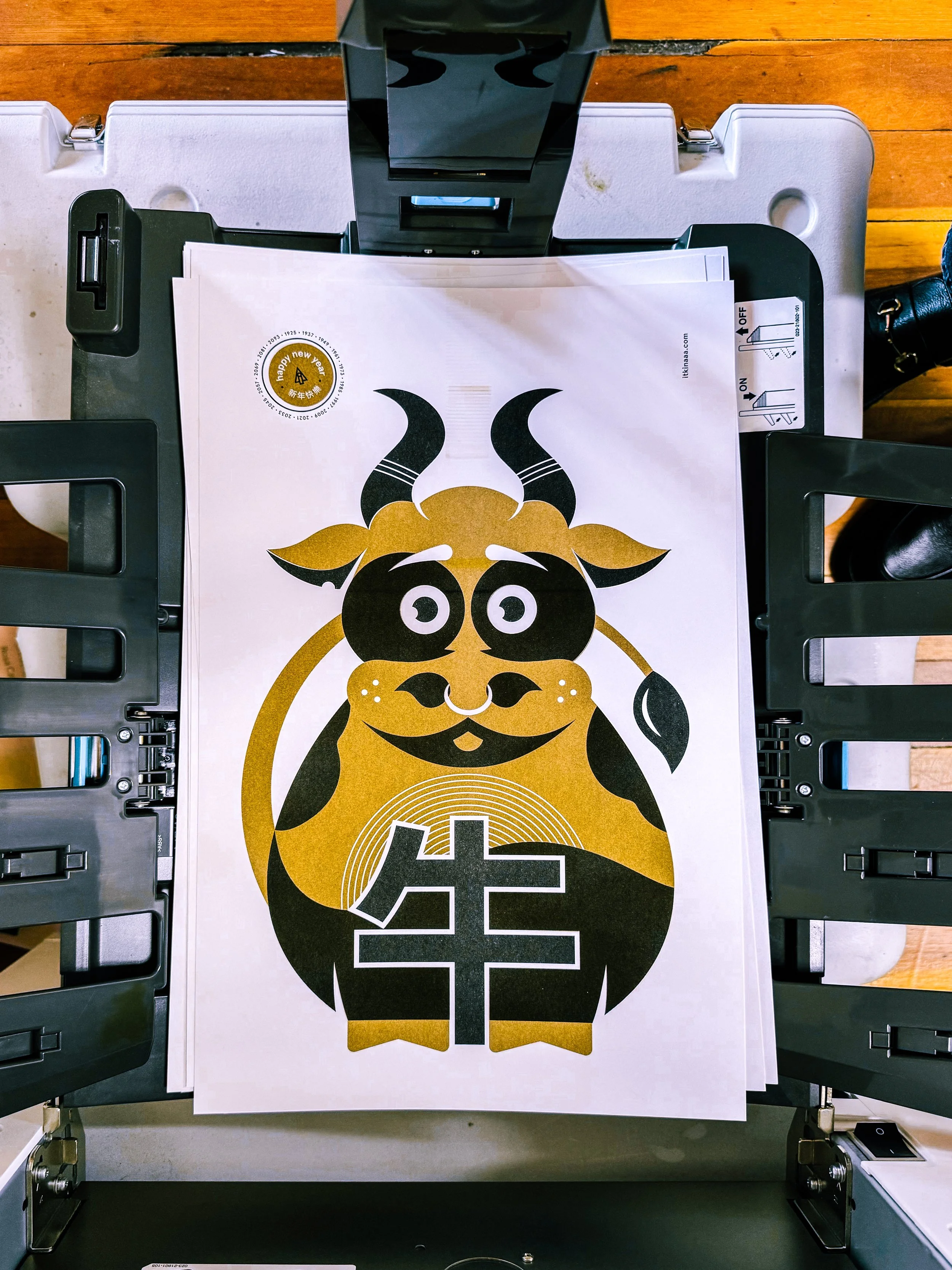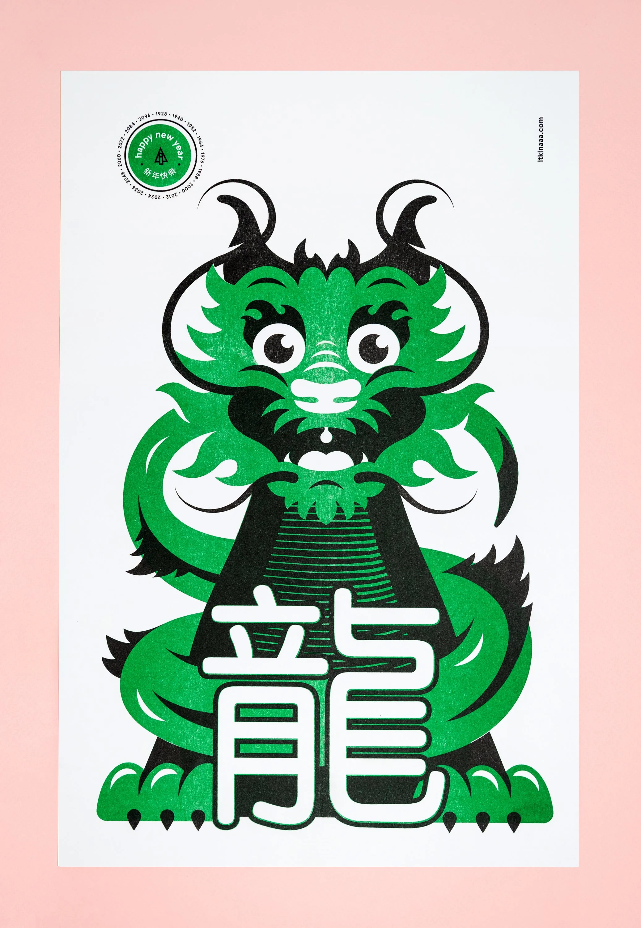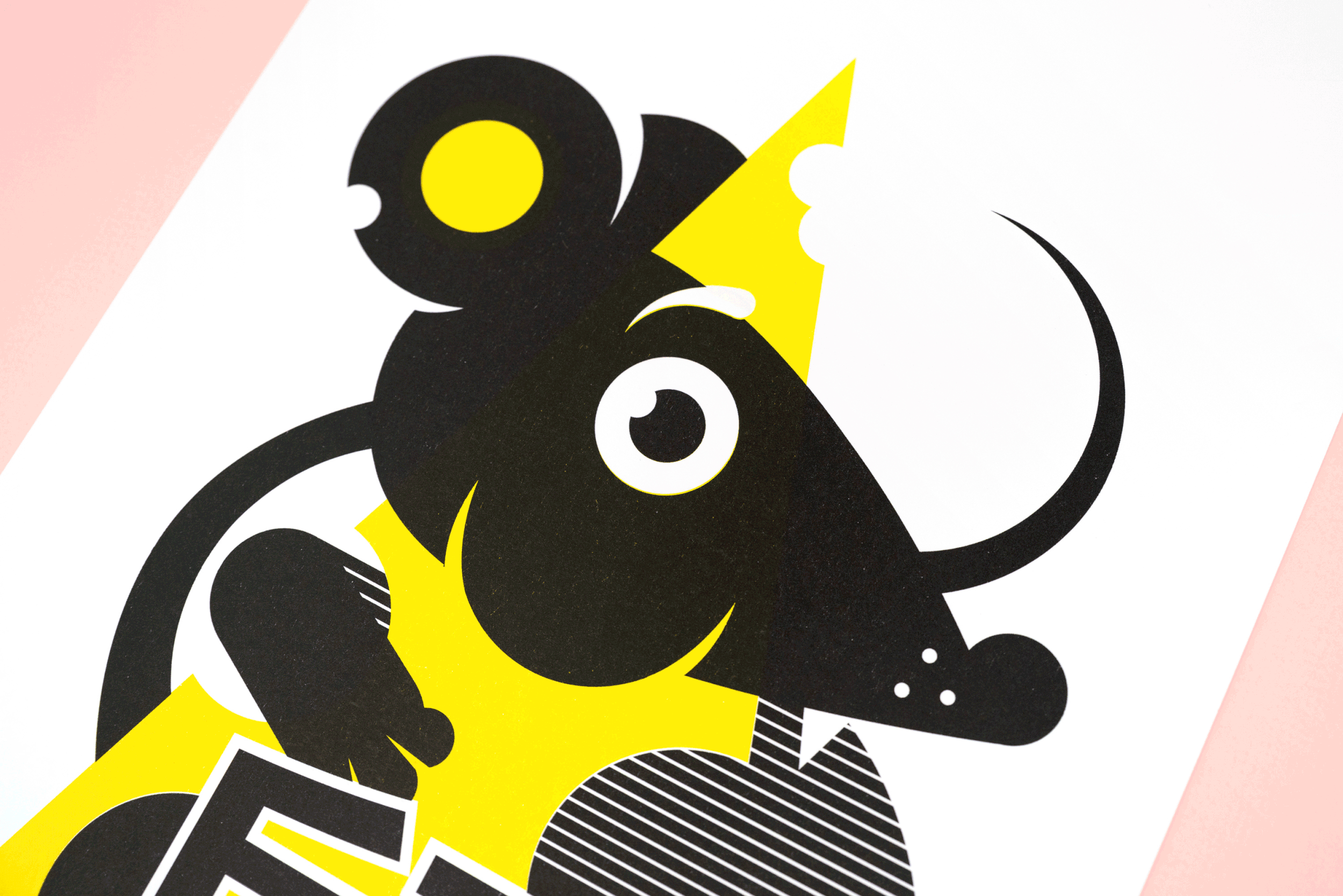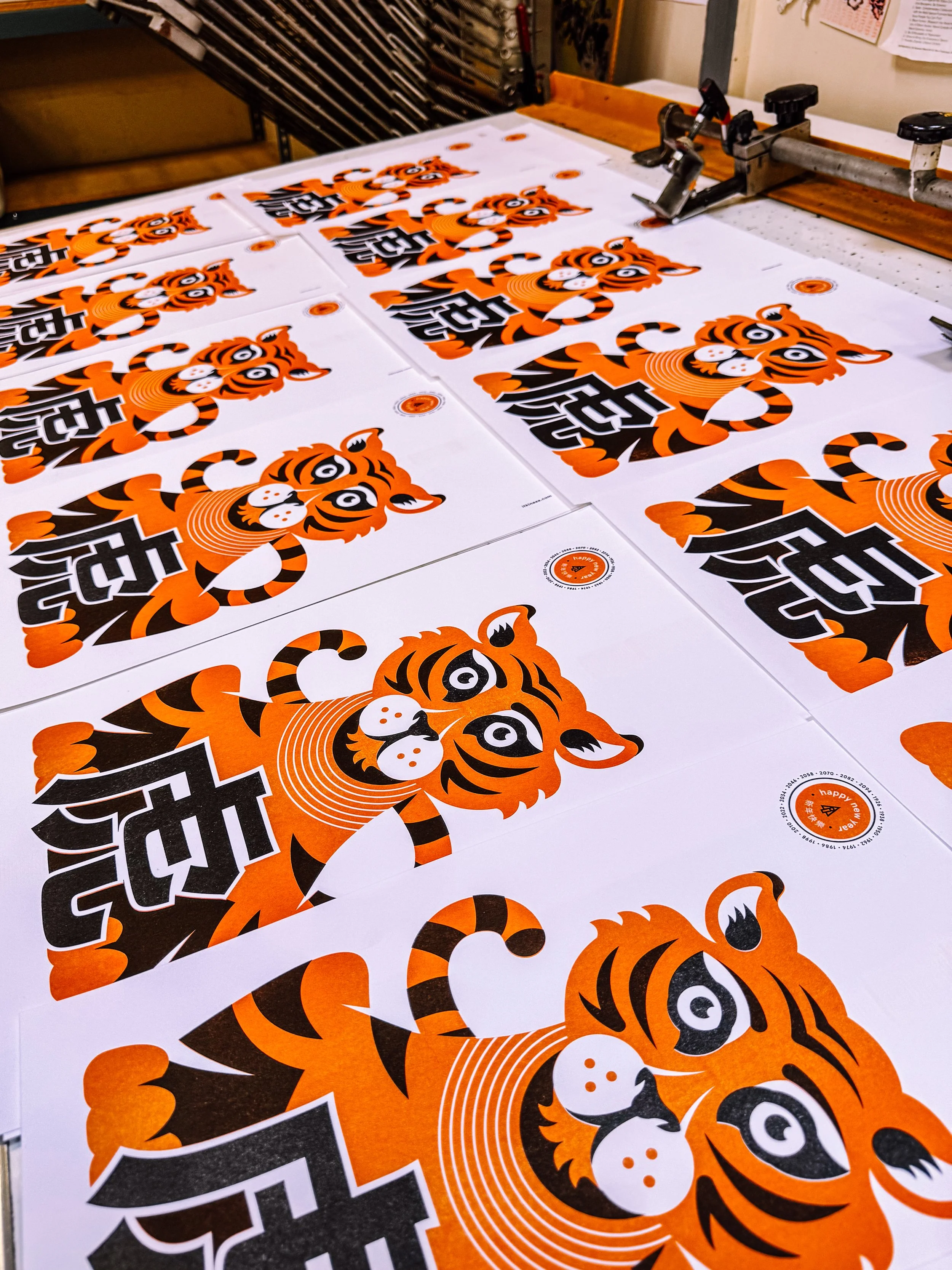 Each poster in the series is printed on a Risograph machine in 2 manually registered layers. So far the series features 10/12 Zodiac animals in unique colors and distinct patterns. Anastasia continues to produce new animal prints annually.